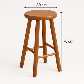 Banqueta Redonda de Madeira – 70cm de Altura x 30cm de Diâmetro Com um design rústico e atemporal, esta banqueta redonda de madeira é perfeita para compor cozinhas, bancadas, bares ou áreas gourmet. Fabricada em madeira maciça, oferece resistência e durabilidade, com acabamento natural que valoriza os veios e a textura da madeira. Seu assento circular de 30cm de diâmetro garante conforto, enquanto a altura de 70cm é ideal para uso em bancadas e balcões. As quatro pernas levemente inclinadas aumentam a estabilidade e contam com travessas inferiores que também funcionam como apoio para os pés, proporcionando ainda mais conforto no uso diário. Características: