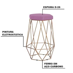 Banqueta Decorativa Rubel Base Veludo Rosê - Gran Belo É ideal para quem está à procura de um produto moderno para decorar o ambiente de forma despojada. Sua estrutura é totalmente em ferro com pintura eletrostática, o que torna o produto mais resistente. A Banqueta Rubel pode decorar sua sala, sua cozinha, área gourmet, varanda, e muito mais! Corre aproveitar.