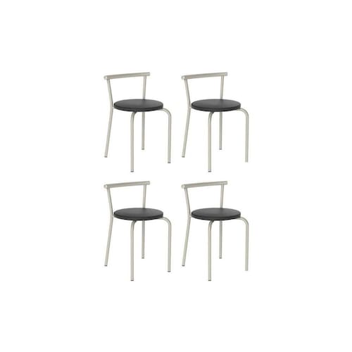 Banqueta Sala de Jantar 105 Kit 4 Uni Prata/Courano Preto - Carraro
