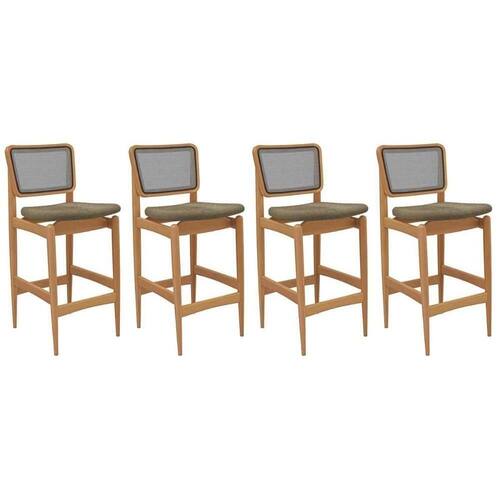Banqueta Sala De Jantar Liz 1bmm009ca Premium Madeira Maciça Kit 4 Un Carvalho/boucle Bege Fendi/tela Bege - Kappesberg