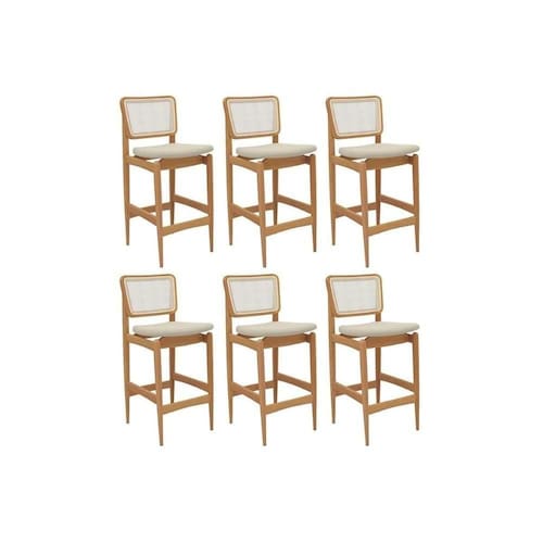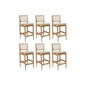 Abaixo segue os produtos do KIT: Banqueta Sala de Jantar Liz 1BMM009CA Premium Madeira Maciça Kit 6 Un Carvalho/Linho Bege Argila/Tela Bege - Kappesberg