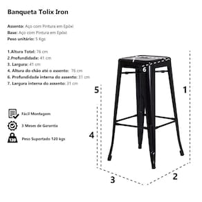 Modelo: Banqueta Tolix Iron Design Assento: Aço com Pintura Epoxi Base: Aço com Pintura Epoxi
