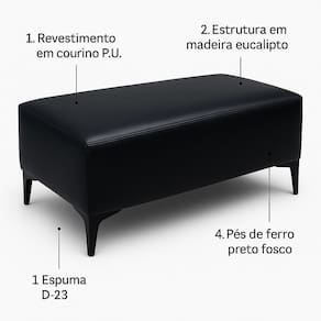 Banqueta Puff Decorativo Vegas Courino Preto - Bela Manu Decor