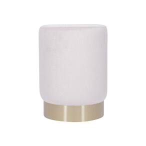 Puff redondo revestido em veludo rosado e forrado internamente com espuma. Possui pé em latão dourado totalmente espelhado. Esta peça é muito versátil, pode ser utilizada como apoio ou assento extra quando você precisar.