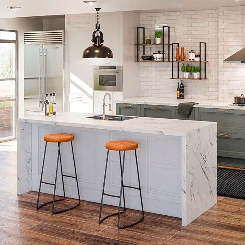 Banqueta Zênite - Cobre - Assento Estofado Pérola - 75cm
