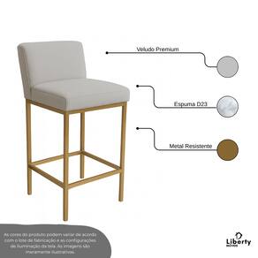 Banqueta Viena Alta Estofada em Veludo com Base de Metal Cinza Liberty Móveis