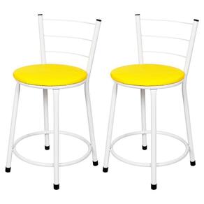 Kit 2 Banquetas Baixa Epoxi Branca Assento Amarelo