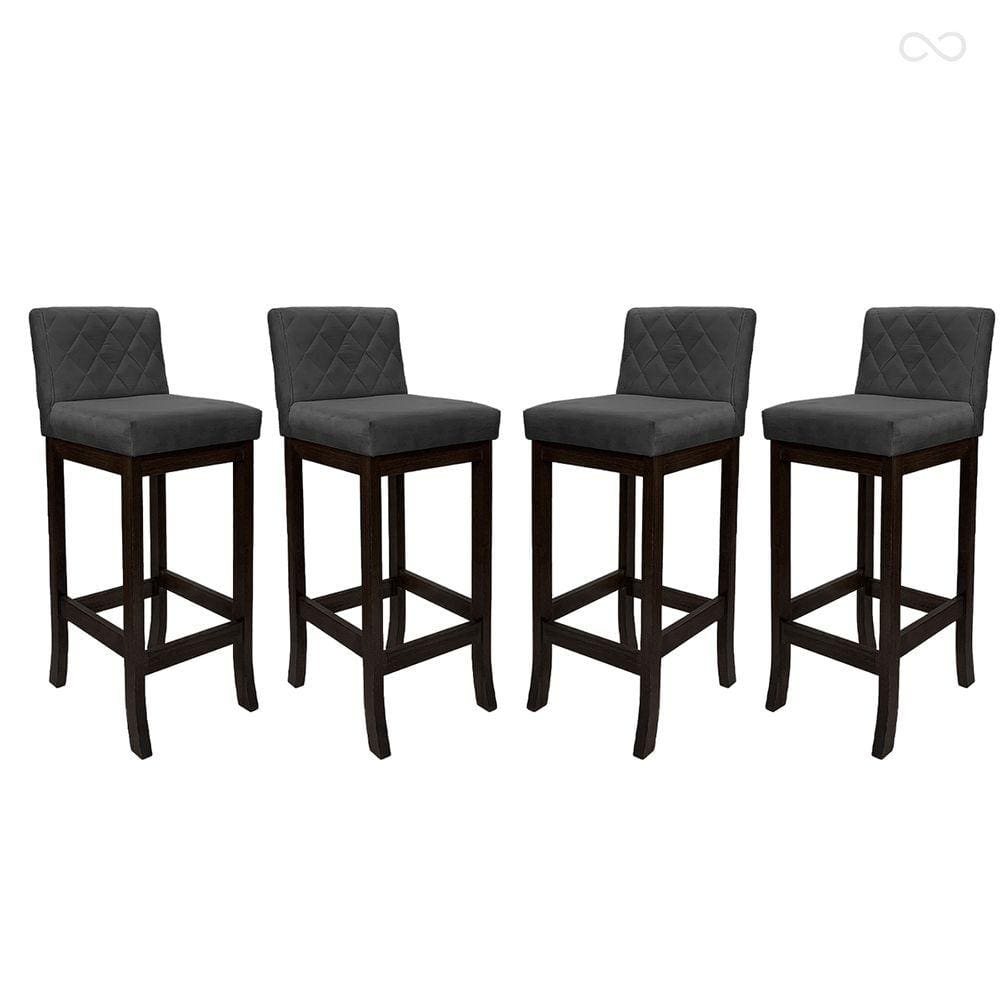 Kit 4 Banquetas Média para Cozinha Tóquio Madeira Maciça Matelassê Suede Cinza CCS