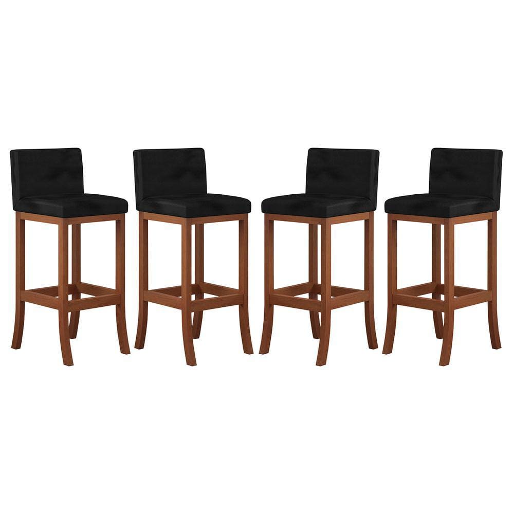 Kit 5 Banquetas Alta para Cozinha Americana Turim Madeira Capuccino Suede Preto CCS
