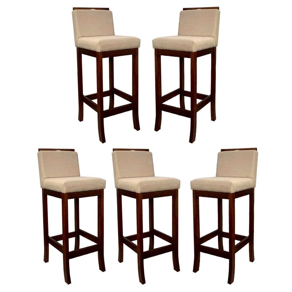 Kit 5 Banquetas Alta para Cozinha Americana Turim Madeira Capuccino Linho Bege CCS