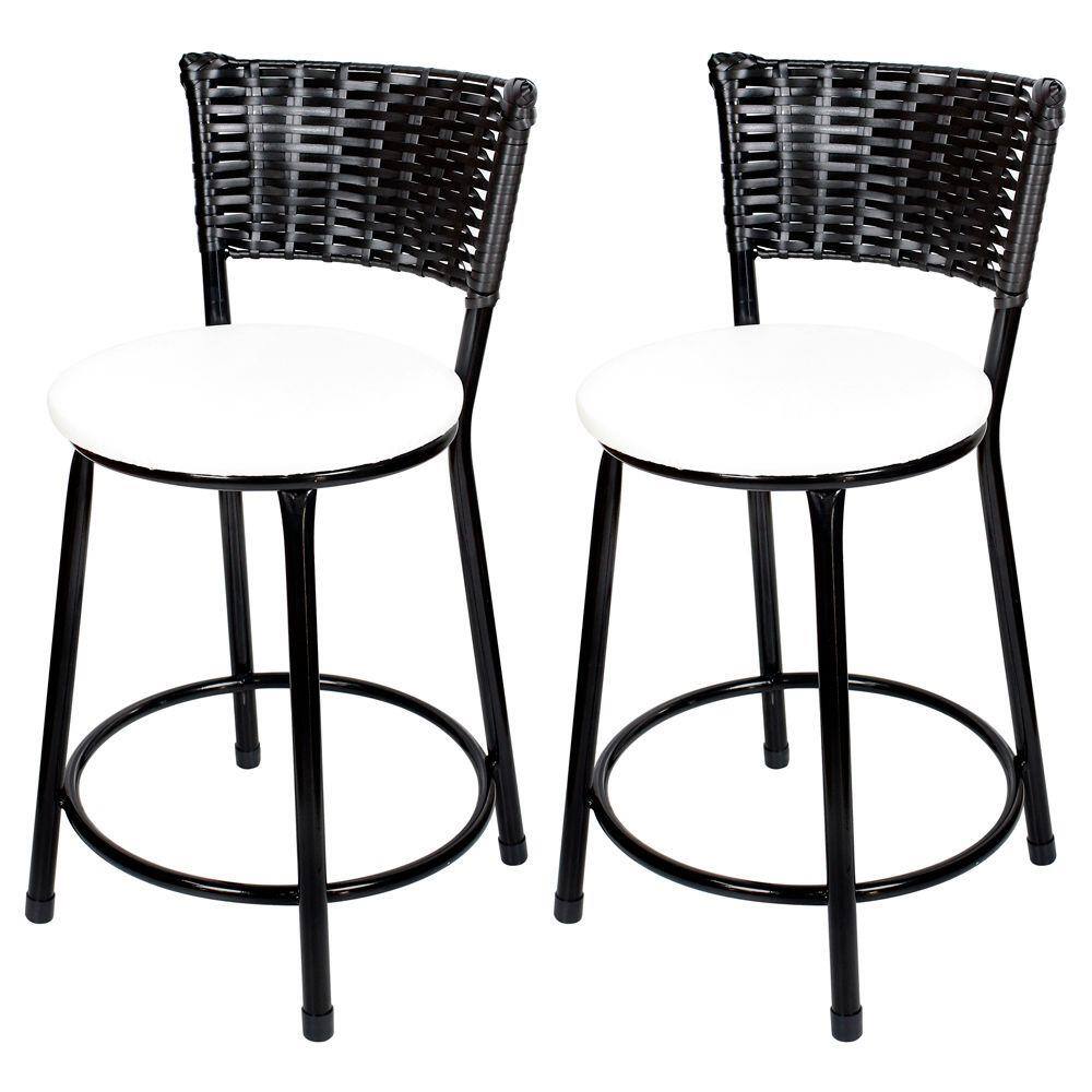 Banquetas Baixa Para Cozinha Preto 2Un Assento Branco