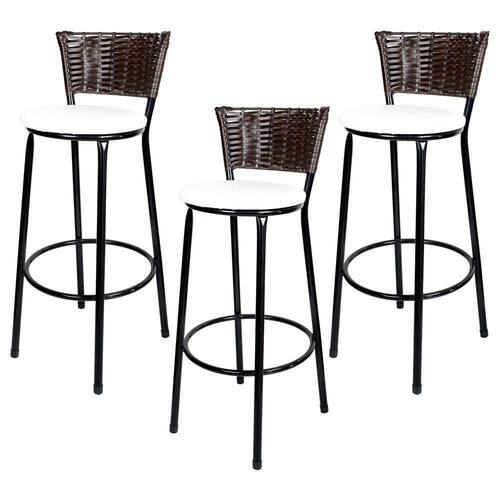 O Kit 3 Banquetas Alta Ratan Hawai Tabaco é perfeito para Salas de jantar, cozinhas, bares, restaurantes, hotéis, área de lazer, cozinhas americanas entre outros. Sua estrutura em aço com pintura em epóxi, é uma combinação de resistência e durabilidade. Compacta, fácil de ser armazenada, pode ser mantida em locais tanto abertos quanto fechados. Com assento revestido em courino, lhe proporcionando um maior conforto ao se sentar, e conta também com protetor para os pés, para a segurança dos assoalhos.