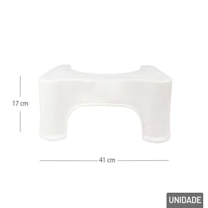 Com design moderno, compacto e discreto na cor branca, o banquinho combina com qualquer tipo de banheiro, ocupando pouco espaço e podendo ser encaixado na base do vaso sanitário quando não estiver em uso. Fabricado em material plástico resistente e de fácil limpeza, ele oferece estabilidade, segurança e conforto para adultos e crianças.