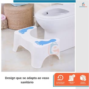 - Postura correta na hora de evacuar; - Design que se adapta ao vaso sanitário; - Fácil higienização; - Descanso ergonômico para os pés; - Possui 4 antiderrapantes de alta aderência; - Ajuda a prevenir prisão de ventre; - Previne contra problemas de incontinência; - Previne problemas no assoalho pélvico; - Ajuda a evitar síndrome do intestino irritado; - Ajuda a prevenir hemorroidas; - Ajuda a evitar o câncer de cólon; - Pode ser higienizado com álcool 70 ou água e sabão/detergente neutro.