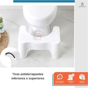 - Postura correta na hora de evacuar; - Design que se adapta ao vaso sanitário; - Fácil higienização; - Descanso ergonômico para os pés; - Possui 4 antiderrapantes de alta aderência; - Ajuda a prevenir prisão de ventre; - Previne contra problemas de incontinência; - Previne problemas no assoalho pélvico; - Ajuda a evitar síndrome do intestino irritado; - Ajuda a prevenir hemorroidas; - Ajuda a evitar o câncer de cólon; - Pode ser higienizado com álcool 70 ou água e sabão/detergente neutro.