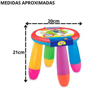 Com uma altura de 21 cm e largura de 20 cm, esse banquinho é ideal para crianças a partir de 12 meses. Feito de polipropileno resistente, ele é altamente seguro, garantindo a diversão por muito tempo.