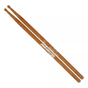 A ponta em madeira no formato gota oferece um som limpo e articulado nos pratos, além de uma resposta suave nos tambores. Esse formato proporciona versatilidade sonora, permitindo que o baterista explore nuances tanto nos ataques quanto nos toques mais sutis. A sonoridade produzida por essa ponta é bem equilibrada, ajudando o músico a obter timbres mais definidos, principalmente em conduções com pratos como ride e hi-hat.
