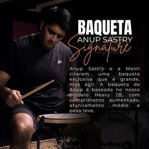Baqueta meinl stick & brush signature anup sastry Anup sastry e a meinl desenvolveram uma baqueta signature que é grande, mas ágil. O modelo de anup tem como base a nossa heavy 2b, com comprimento aumentado, afilamento médio e peso leve. Essa combinação oferece grande alcance e potência, mantendo um toque leve e responsivo - sem parecer pesada ou lenta. Uma camada extra de verniz fino foi aplicada para melhorar a aderência. como uma baqueta maior, ela é muito bem equilibrada. Nem muito pesada, nem muito leve. Sempre quis uma baqueta um pouco mais longa e grossa que uma 2b padrão, mas que não fosse pesada ou cansativa. Ela une o melhor dos dois mundos: as dimensões de uma baqueta grande com o peso de algo mais leve e ágil.