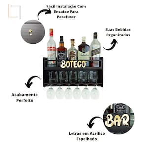 Bar barzinho adega suporte de parede para whisky destilados Nosso barzinho de parede veio para somar no seu espaço e ainda conseguir manter tudo organizado e fácil de localizar. Com capacidade para 6 taças, copos e garrafas.