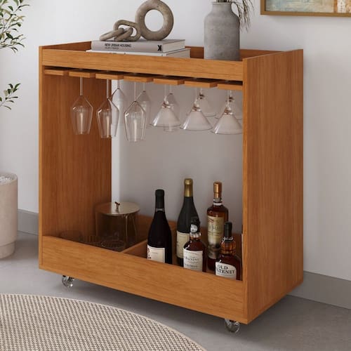 O(a) Bar Duna Porta Taças Natural - Tebarrot é produzido em MDF e MDP na escala de brilho Semi-Brilho, e possui um grau de dificuldade de montagem: Médio.