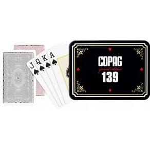 Baralho 139 Copag Na Lata Edição Especial 100 Anos O Baralho mais vendido no Brasil em uma edição especial para os amantes dos jogos de carteado. São dois decks do famoso Baralho 139 Copag dentro de uma linda lata. Produto fabricado com excelência de qualidade. Não transparente, atóxico e reciclável. Cartão Couché exclusivo com deslize aveludado de agradável manuseio. Tipo da carta: Cartão couché 290g Tamanho da carta: Bridge Size 57x89 mm Tamanho naipe: Convencional Quantidade de cartas: 110 cartas 2 jogos de 52 cartas + 2 curingas + 2 cartas Observações: Observações Relevantes=Imagens Meramente Ilustrativas Número da peça: 167 Dimensões do produto: 12 x 15 x 4 cm ; 449 g Referência do fabricante: 167 ASIN: B07HF7BH92 Marca: Não Informado