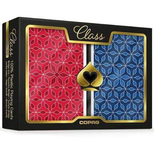 Baralho Copag Class Vanguard Class é a linha de baralhos plásticos Copag ideal para os jogadores mais exigentes. Com deslize único, os baralhos possuem alta durabilidade e são resistentes ao manuseio e marcações. São 6 modelos novos de baralho plástico em estojo duplo, com versos clássicos e contemporâneos.