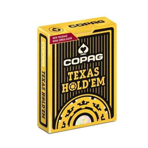 As cartas do Baralho Texas Hold’em Copag são do tamanho poker size 63x88mm com naipe grande, não transparentes e impermeáveis. Cada deck de baralho possui cinquenta e cinco 55 cartas, sendo cinquenta e quatro 54 cartas para jogar e uma 1 carta garantia.O Baralho Texas Hold’em Preto é encontrado nos melhores clubes de poker do Brasil e também nas casas dos amantes de poker proporcionando grandes momentos de diversão e interação entre pessoas.O Texas Hold’em é uma modalidade do jogo de poker que também é conhecida como Poker Aberto. É jogada apenas com um baralho. As cartas são embaralhadas pelo dealer representado pelo botão à sua frente e distribuídas uma a uma em sentido horário. Cada jogador receberá duas cartas fechadas que só ele poderá ver. Cinco cartas abertas serão dispostas sobre a mesa ao longo do jogo. A mão final será definida pela combinação de apenas cinco cartas entre as sete que estão disponíveis ao jogador cinco na mesa mais duas em mãos .