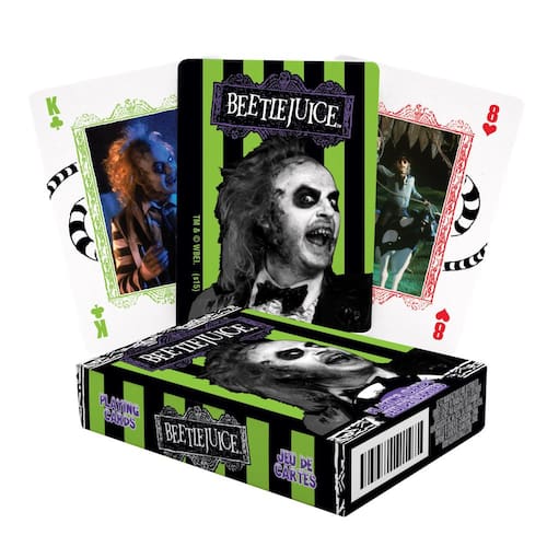 - BEETLEJUICE! BEETLEJUICE! BEETLEJUICE! Jogue seus jogos de cartas favoritos com amigos e familiares enquanto convoca o bioexorcista favorito de todos com este baralho oficial de cartas Beetlejuice