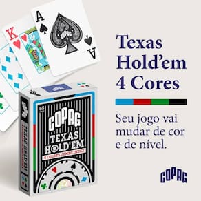 BARALHO DE POKER TEXAS HOLD’EM NAIPE 4 CORES VERSO VERMELHO CARTAS COPAG JOGO POKER
