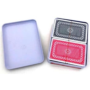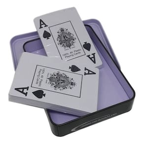 Características Baralhos fabricados em plástico duplo com estojo em lata Prático para armazenar Baralho com letras grandes, o que torna mais fácil a visualização e mais agradável o jogo Ideal para jogos de canastra, buraco, truco, pife, cacheta, poker, entre outros