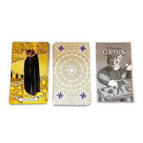 O tarô dos Gatos apresenta imagens desses animais místicos e mágicos e foi projetado para incorporar o simbolismo felino à estrutura tradicional do tarô. Composto por 78 cartas divididas em 22 Arcanos Maiores e 56 Arcanos Menores, cada um com ilustrações exclusivas de gatos representando elementos de O Tarô Clássico de Waite.