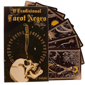Baralho O Tarot Negro 78 Cartas Completo Todos os Arcanos Baralho O Tradicional Tarot Negro 78 cartas Completo Todos os Arcanos O O Tradicional Tarot Negro da Bialluz possui as 78 cartas plastificadas e com material bem resistente que não amassa, além de ser firme facilitando o manuseio durante a sua leitura. Possui cores vivas, desenhos exclusivos e um brilho incomparável. Acompanha um manual super detalhado e com as informações necessárias para te auxiliar a fazer um bom jogo Enviamos o seu baralho em até 24 horas após a confirmação de pagamento Dimensões aproximadas das cartas:Comprimento: 11,5 cmLargura: 7 cm Material: Papel cartão plastificadoCor: Preto e dourado Caso tenha alguma dúvida nos mande mensagem que respondemos rapidinho para te ajudar da melhor forma possível Marca: Bialluz Presentes