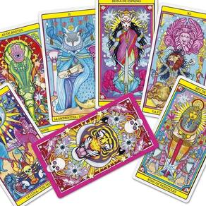 O tarot de El dios de los Tres tem como objetivo inundar tudo o que toca com seu universo estético intrínseco e particular: uma ode à fantasia, cor e espetáculo. uma cosmogonia visual vibrante e urbana dotando este tarô de energia, positividade, alegria e liberdade.