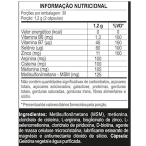 Barba e Cabelo Homem Man Suplemento Alimentar 60 Cápsulas 600mg com Selênio, Zinco, Metionina, Arginina, Ciestína, Vitamina B6 e B7.