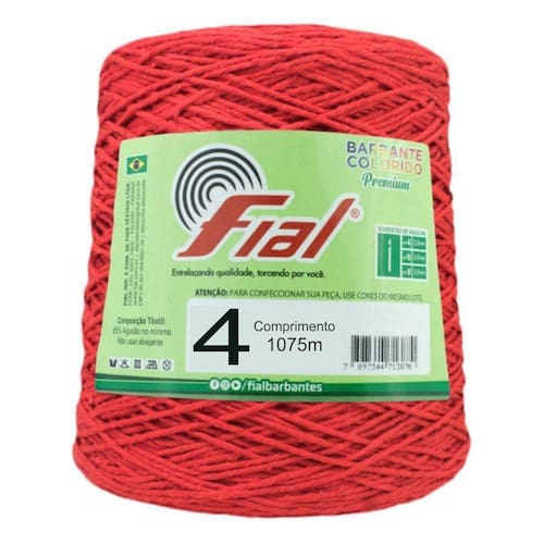 O Barbante Fial Colorido 700g é indicado para confecção em crochê de tapetes, bolsas, almofadas, jogos de banheiro, jogos de cozinha entre outros. Proporcionando trabalhos com resultados perfeitos e de ótima qualidade.Fabricante: FialTex: 600Composição: 85% algodão no mínimoComprimento do fio: 1075mPeso do novelo: 700gQuantidade por embalagem: 1 noveloAgulhas Recomendadas: Crochê 2,5mm Observações adicionais: - Fotos meramente ilustrativas que podem sofrer variação de tonalidade de acordo com a configuração do monitor ou smartfone. - Produtos sujeito a variação de tonalidade de cor por lote produzido. - Procure adquirir a quantidade necessária para a conclusão da peça.