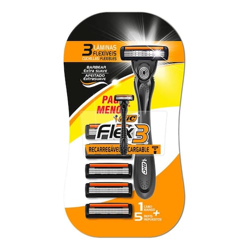 O Barbeador BIC Flex 3 Recarregável foi desenvolvido para auxiliar e facilitar o momento de barbear. Suas 3 lâminas promovem um excelente desempenho que proporciona um barbear extra suave. Seu cabo ergonômico oferece uma pegada mais firme, prática e precisa. Além disso, possui uma cabeça móvel, que contorna melhor o seu rosto de maneira segura. Contém na cabeça, fita lubrificante com Aloe Vera e Vitamina E, que ajudam a evitar que a pele irrite, deixando-a mais macia.
