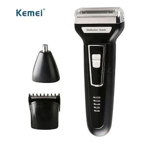 Barbeador Elétrico 3 Em 1 Kemei Km-6776 Design Arrojado Chegou a máquina Kemei 3 em 1, com três ponteiras diferentes, possibilitando você retirar pelos de orelhas e nariz, fazer pezinho, fazer a sobrancelha, barba e retirar pelos do corpo.Ela é recarregável em rede elétrica 110v ou 220v, ou seja é bivolt. Leva 8 horas para recarregar totalmente e dura cerca de 60 minutos de uso.