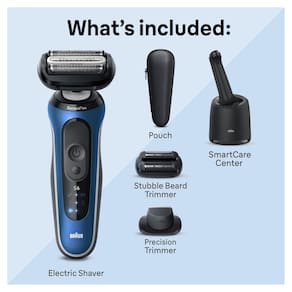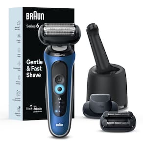 Barbeador elétrico Braun para homens, série 6 6177 cc, barbear úmido e seco, modos de barbear turbo e suave, barbeador de alumínio, azul - BARBEAR SUAVE MAIS RÁPIDO*: Barbeador Braun Série 6: para um barbear suave, mais rápido do que nunca. Testado dermatologicamente, agora com Sensitive SkinGuard (*versus Braun Series 6 anterior) - MINIMIZE A PRESSÃO NA PELE. A cabeça de barbear SensoFlex minimiza a pressão na pele para maior proximidade, mesmo em peles sensíveis - 2 MODOS DE BARBEAR: agora com o modo Gentle e o modo Turbo para um barbear extra rápido com até 28,5% mais ações de corte (versus modo Gentil) por segundo - CONSTRUÍDO PARA DURAR: projetado na Alemanha, uso úmido e seco, bateria de íon de lítio de até 50 minutos - INCLUI: centro SmartCare 4 em 1, aparador de precisão, Bee Acessório e bolsa Stubbler