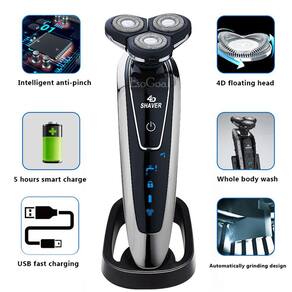 CARREGAMENTO CONVENIENTE: Pode ser carregado por linha USB diretamente ou usando o suporte. Desfrute de até cerca de 60 minutos de tempo de barbear (ou cerca de 30 barbeados completos). O barbeador leva apenas 8 horas para carregar e é muito conveniente para o uso diário e viagens. UM BARBEAR SUAVE E FECHADO - Com cabeças flutuantes de 4 vias, o barbeador rotativo 3D adapta-se automaticamente aos contornos do seu rosto, pescoço e até mandíbula, proporcionando um APARADOR POP-UP próximo e confortável e um toque aberto: O aparador de barba pop-up conveniente e amigo da pele apara facilmente as costeletas, os bigodes e qualquer penteado facial. Ele também possui uma aba de um toque fácil de abrir para aparar rapidamente os pelos faciais indesejados TOTALMENTE À PROVA D'ÁGUA: O corpo IPX7 é à prova d'água, permitindo que você use o barbeador elétrico molhado ou seco, mesmo no chuveiro. Adapta-se facilmente à espuma de barbear ou gel para uma experiência de barbear melhor e mais próxima. MOTOR SILENCIOSO DE ALTA VELOCIDADE & ndash; O motor premium não é apenas eficiente, mas também silencioso para que você possa aproveitar cada momento do seu barbear.