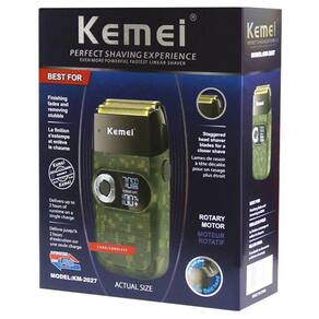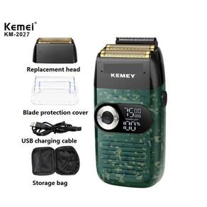 DescriçãoMarca: KEMEINúmero modelo: KM-2027Tipo de alimentação: recarregável, com cabo usbUso da lâmina: rosto, cabelo, corpo, para cabelo curto.Material: abs + aço inoxidávelTensão: 110-240v 50hz / 5wTempo de carregamento: 2 horasTempo de uso: 120minCapacidade da bateria: 1400mah /lítio recarregávelCor: Verde-escuroEspecificações Técnicas:Características1. Malha de aço inoxidável2. Baixo nível de ruído3. Motor de cobre puro de alta potência 4. Lcd exibe a velocidade do motor, energia restantePacote1 Máquina1 Cabo USB1 Manual do usuário1 Escova de limpeza pequena1 Bolsa/caseAcabamento desaparece e remoção de restolhoMotor giratório poderoso e silenciosoFolha hipoalergênica titanium do ouro para o barbear sem irritação2 sistema de corte de lâmina de barbearTrabalho sem fio ou com fioDesign de carregamento USB Velocidades do motor de 3 engrenagens,6500/7000/7500 rpmBateria de lítio-ion de 1400 mahDisplay lcd, lembrete de carregamento, lembrete de ajuste de velocidade, lembrete de porcentagem de energia da bateria2 horas de tempo de carregamento120 minutos de tempo de trabalhoInglês manual do usuárioRegistro Inmetro EL-045/21