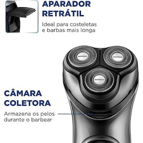 Características: - uso seco - 3 lâminas duplas de inox - luz indicadora de bateria - aparador retrátil - câmara coletora de pêlos - corte rápido, preciso e suave - carregamento rápido que garante dias de uso - bateria recarregável