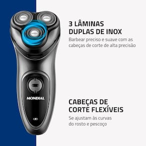 O Barbeador Elétrico Power Shave BE-02 da Mondial é o aparelho ideal para a sua rotina de barbear. Ele tem 3 Lâminas Duplas e as lâminas são de inox, o que proporciona um barbear preciso, suave e confortável. O aparelho tem Aparador de Costeleta, que também serve para aparar barbas mais longas, e bateria recarregável, que permite dias de uso. É a garantia de uma pele lisa e sem cortes!