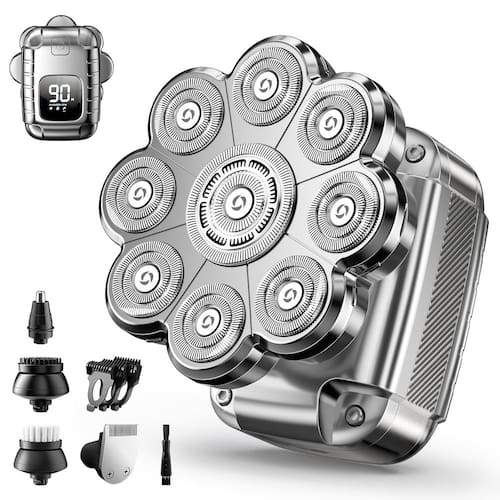 Barbear perfeito, seja viajando ou em casa. Nosso barbeador de cabeça de alto desempenho é ideal para o seu cuidado diário, com design requintado e funções poderosas, adequado para uso em casa ou em movimento. Seja dado ao seu marido, amigos ou família, é um presente perfeito para permitir que eles experimentem o conforto e a conveniência do barbear. Design magnético destacável atualizado Diga adeus aos problemas de limpeza dos barbeadores tradicionais, nosso barbeador de cabeça adota um design inovador destacável e magnético. Após cada barbear, basta desmontar suavemente, todo o barbeador de cabeça da lâmina para homens carecas pode ser removido rapidamente e facilmente enxaguado para garantir que o barbeador elétrico da lâmina esteja sempre nas melhores condições de funcionamento. Você não precisa mais se preocupar com a limpeza após o barbear. 9 cabeças de barbear lisas. Este barbeador elétrico masculino está equipado com 9 lâminas flutuantes, que são cuidadosamente projetadas ergonomicamente para se ajustar perfeitamente às curvas do couro cabeludo, pescoço e rosto. Combinado com um potente motor de alta velocidade, pode remover mais pelos de forma rápida e eficiente, reduzindo significativamente o tempo de barbear, para que você possa lidar facilmente com os cuidados diários em sua vida ocupada. Design de rede de lâmina de precisão Nosso barbeador de cabeça careca usa uma lâmina dupla e design de rede de proteção de camada dupla, que pode capturar com precisão e rapidez cabelos longos e curtos, evitando puxar e beliscar o cabelo. O processo de barbear é seguro e suave, o que pode efetivamente reduzir a irritação da pele, proteger sua pele e proporcionar uma experiência de barbear sem preocupações. Design à prova d'água IPX7 Se você escolher barbear seco ou molhado, o design à prova d'água IPX7 pode atender às suas necessidades. Você pode se barbear facilmente no chuveiro e desfrutar de uma experiência de barbear refrescante ou arrumar rapidamente em um ambiente seco. Torne o barbear um prazer sem se preocupar com manchas de água ou problemas de limpeza, para que você possa manter sua melhor imagem a qualquer hora, em qualquer lugar. Tela inteligente LED e vida útil da bateria de longa duração. Este barbeador de cabeça elétrico para homens está equipado com um visor inteligente de LED, que exibe o tempo de uso restante, lembrete de bateria fraca e lembrete de limpeza em tempo real, para que você sempre possa saber o status do barbeador. O carregamento rápido leva apenas 1,5 hora e o tempo de uso contínuo pode chegar a 90 minutos. O método de carregamento é flexível e diversificado, compatível com laptops, carros e fontes de alimentação móveis, o que é conveniente para o seu uso diário. Conjunto multifuncional 5 em 1. Nosso barbeador para cabeça careca é mais do que apenas uma ferramenta de barbear. Ele também inclui cinco acessórios substituíveis: cabeça de barbeador de cabeça/rosto, aparador de pelos de costeleta, aparador de pelos do nariz, massageador facial e escova de limpeza facial, que pode atender plenamente às suas diversas necessidades de barbear. Além disso, a bolsa de armazenamento portátil incluída é conveniente para sua viagem e armazenamento, tornando este barbeador a escolha ideal para amigos e parentes. Escolha nosso barbeador de alto desempenho para dar à sua experiência de barbear um novo visual e lidar facilmente com suas necessidades diárias de cuidados!
