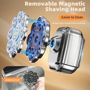 - Design magnético destacável avançado: diga adeus à limpeza tediosa dos barbeadores tradicionais. Nosso barbeador de cabeça adota um design inovador destacável e magnético, tornando a limpeza mais fácil do que nunca. Após cada barbear, você pode remover facilmente toda a lâmina com apenas um desprendimento suave e enxaguar rapidamente para remover todos os pelos residuais, mantendo a lâmina na melhor condição de funcionamento.