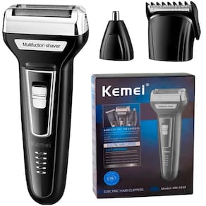 - marca: kemei - modelo número: km-6558 - alimentação: recarregável - característica: lâmina dupla - utilização: corpo, barba, bigode, cabelo, nariz e orelhas. - tempo de uso: até 60 minutos - tempo de carga: 8 horas - tensão: 110-220v - potencia nominal: 3w - material: abs + stainless steel - tamanho: 16cm x 3cm - tipo de item: barbeador elétrico, aparador de pelos e cortador de cabelos