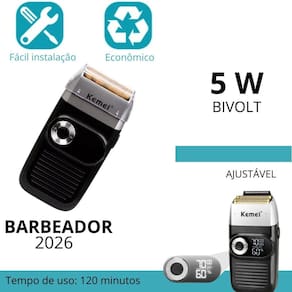 Descrição do anúncio: Apresentamos a máquina de corte kemei km-2026, um aparador de pelos e potente, perfeito para cortar cabelo, barba e pelos corporais com precisão e facilidade. Equipada com 3 pentes ajustáveis, oferece uma ampla gama de comprimentos de corte, de 0,8 mm a 20 mm, para atender às suas necessidades de estilo. O motor robusto proporciona até 5.000 rpm, garantindo cortes rápidos e suaves, enquanto as lâminas de cerâmica mantêm-se afiadas por mais tempo, minimizando o atrito e o acúmulo de calor. Com design ergonômico e alças de toque suave, a km-2026 proporciona conforto durante o uso prolongado e conta com lâminas integradas para acabamento e detalhamento. A máquina de corte kemei km-2026 é a escolha ideal para profissionais e consumidores que buscam uma solução de corte de alta qualidade e acessível. Conteúdo da embalagem: 1 máquina kemei 2026 1 cabo usb carregador 1 manual do usuário 1 escova de limpeza 1 bolsa Características: Prática e eficiente para cortar cabelo, barba e pelos corporais Equipada com 3 pentes ajustáveis 0,8 mm a 20 mm Motor robusto com até 5.000 rpm para cortes rápidos e suaves Lâminas de cerâmica que se mantêm afiadas por mais tempo Design ergonômico com alças de toque suave Lâminas integradas para acabamento e detalhamento Recarregável com cabo usb Display digital Silenciosa Apta para viagem Especificações: Marca: kemei Modelo: km-2026 Potência: 5w Tipo de alimentação: recarregável com cabo usb Uso da lâmina: rosto, cabelo, corpo, cabelo curto Material: abs + aço inoxidável Tensão: 110-240v 50hz / 5w Tempo de carregamento: 2 horas Tempo de uso: 120 minutos Capacidade da bateria: 1400mah / lítio recarregável Cor: preto com detalhes em prata Principais perguntas sobre o produto e respostas: 1 qual é o tempo de carregamento da máquina O tempo de carregamento é de 2 horas. 2 quanto tempo dura a bateria após o carregamento completo A bateria dura 120 minutos de uso contínuo. 3 a máquina é recarregável Sim, a máquina é recarregável e vem com um cabo usb. 4 quais são os comprimentos de corte disponíveis A máquina oferece comprimentos de corte de 0,8 mm a 20 mm. 5 a máquina é silenciosa Sim, a máquina é silenciosa durante o uso. 6 pode ser Utilizado para cortar cabelo, barba e pelos corporais Sim, a máquina é adequada para cortar cabelo, barba e pelos corporais. 7 qual é a potência do motor da máquina A potência do motor é de 5w. 8 a máquina é adequada para viagens Sim, a máquina é apta para viagens. 9 as lâminas são de cerâmica Sim, as lâminas são de cerâmica, o que garante que se mantenham afiadas por mais tempo. 10 a máquina possui display digital Sim, a máquina possui um display digital para facilitar o uso.