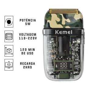 Especificação: Nome da marca: KEMEI Cor: verde Voltagem: 5V Energia: 5W Tempo de carga: 2 horas Tempo de funcionamento: 120 minutos Bateria: Bateria li-on de 1200mAh Conteúdo da embalagem: 1 x máquina 1 x cabo USB tipo-C 1 x bolsa de armazenamento 1 x pincel Características: Aparência transparente distintiva: o corpo transparente permite que você veja claramente a estrutura interna das lâminas. Mais leve e durável. Projetado para barbearias e uso doméstico. As lâminas oferecem as experiências de barbear mais próximas, suaves e delicadas. Display de LED inteligente e longa duração da bateria: os monitores de LED podem exibir claramente a porcentagem restante da bateria, o lembrete de quantidade de combustível e o lembrete de carregamento, fácil de armazenar e carregar durante a viagem. Para sua conveniência, o kemei Finale vem com todos os acessórios necessários para o uso. O pacote inclui a lâmina, cabo USB, bolsa de armazenamento, escova de limpeza. Operação de longa duração: As lâminas são sinalizadas iluminando quando está carregando ou usando. A lâmina elétrica masculina tem uma bateria de íon de lítio de grande capacidade, que pode ser usada por 120 minutos após 2 horas de carregamento. Marca: KEMEI