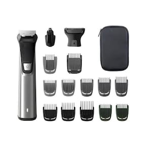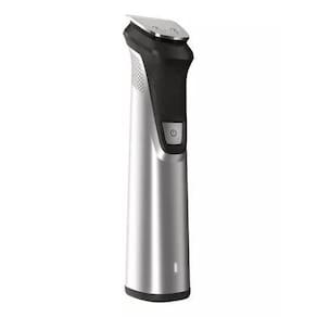 A estrutura de aço completa, a cor preta escura, o aço texturizado e a empunhadura de borracha oferecem controle superior e a bateria de íons de lítio produz 6 horas de autonomia para qualquer área do seu corpo. A trava de viagem permite armazenamento conveniente, mesmo em movimento e em viagens. Philips Norelco Multigroom All-in-One Inclui Punho de aço inoxidável Aparador de metal com lâminas de titânio Depilador corporal Aparador de detalhes Barbeador de precisão Aparador de nariz 3 pentes de cabelo 1 pente de barba ajustável 3 pentes de barba 2 pentes para barba 2 pentes corporais Pente de sobrancelha Bolsa premium e estojo de viagem Marca: Philips Norelco