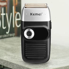 Marca: Kemei Modelo: KM-2026 Cor: Preto Voltagem: 110V/240V Sem fio: Sim Apto para viagem: Sim Com display digital: Sim Silencioso: Sim Função principal: Barbeador Tipo de alimentação: USB Materiais das lâminas: Aço inoxidável Potência: 5 W Inclui bateria recarregável: Sim Tempo de funcionamento: 120 m Tempo de carregamento: 2 h Acessórios incluídos: 1 cabo de carga, 1 escova de limpeza, 1 manual, 1 capa. Marca: Não Informado