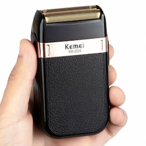 Agora você pode ficar sempre com a barba perfeita com o barbeador portátil lâmina dupla kemei.